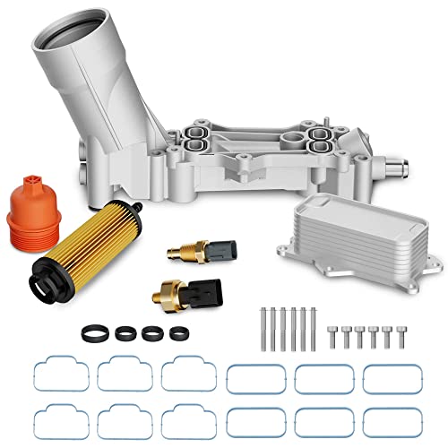 926-959 Upgraded Aluminum Engine Oil Filter Housing with Oil Cooler and Filter and Sensor Assembly Fit for 2011-2016 Chrysler 200 300, ProMaster, Ram 1500, Dodge, Jeep, 3.6L V6 68105583AF 5184294AE