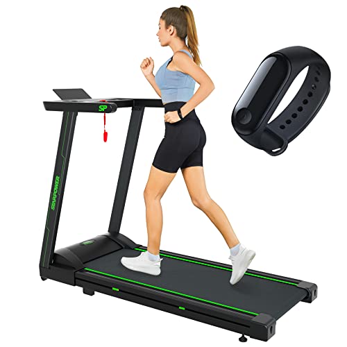 SSPHPPLIE Folding Treadmill with APP & Smart Band, Portable Treadmill Foldable with 300 lb Capacity, 3 HP Compact Treadmill for Small Space