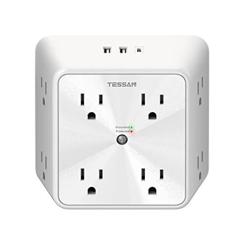 TESSAN Surge Protector Outlet Extender, 8 Multi Outlet Splitter with 3 USB Wall Charger (1 USB C Port), Three Sided 1700J Multiple Plug Adapter for Home Office Dorm Room