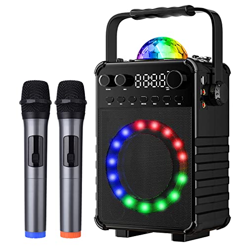Amazmic Karaoke Machine with 2 Wireless Microphones, Bluetooth Portable PA System Bluetooth Speaker with Disco Lights for Kids & Adults, Family Party/ Speach, Supports TF Card/USB, AUX in, FM