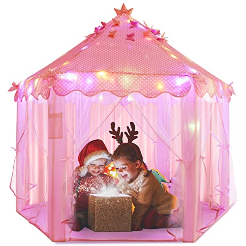 NABIYE Large Princess Tent for Girls, Kids Play Tent with LED Star Lights, 55'' x 53'' (DxH), Princess Toys, Princess Castle for Indoor and Outdoor Games, ASTM&CPC Certified Pink