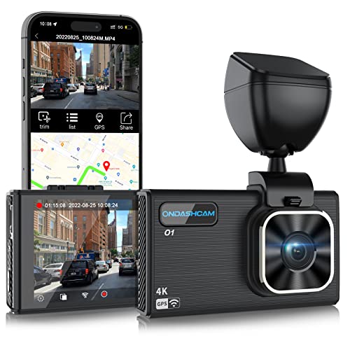 ONDASHCAM O1 4K Dash Cam with Built-in WiFi GPS, 2160P UHD Dash Camera for Cars, 3.5" LCD Dashcam for Cars with 32GB Card, 170° Wide Angle, WDR, Night Vision, G-Sensor, Parking Mode, Support 512GB Max