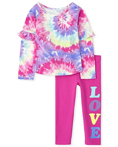 The Children's Place 2 Pack Baby Toddler Girls Long Sleeve Top and Knit Legging Sets 2-Pack, NEON Fairy Purple, 2T